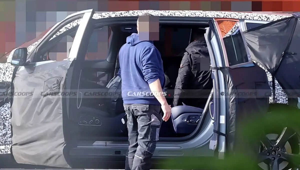 內飾方面,GV90后排座椅采用寬大厚重的設計,以幾何造型進行分隔,并配備寬厚的中央扶手。扶手上集成了杯架、無線充電板以及功能控制屏幕,提升了車內的科技感和實用性。從座椅布局來看,測試車輛疑似為4座版本,進一步強調了其豪華定位。