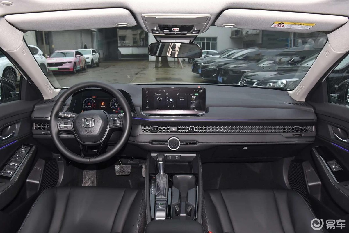 雅閣的內飾則相對傳統保守一些。多功能方向盤握手區域采用真皮材質,握感舒適,不過換擋方式為傳統的機械擋把。10.2英寸的彩色全液晶儀表盤和12.3英寸的中控屏分別布置在中控臺的左前方和中間位置。中控屏搭載Honda CONNECT4.0車機系統,具備面部識別、主駕語音識別、語音免喚醒等功能,還可以在應用商店下載應用,配合8個揚聲器,甚至可以實現K歌娛樂。車內還配備了前排多層隔音玻璃、多色氛圍燈、11.5英寸HUD抬頭顯示系統、主動降噪系統等配置,極大地豐富了車輛的功能性,提升了車內的氛圍格調。