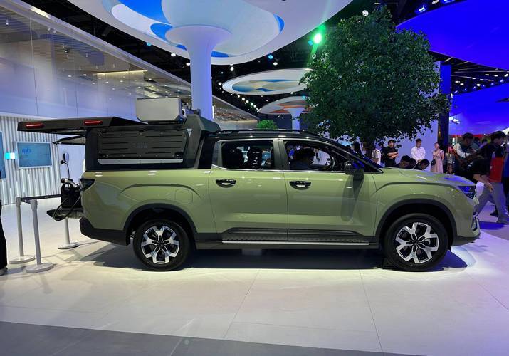 戶外生活概念車RADAR Life Concept以“移動的戶外生活空間”為設計理念,展現雷達汽車對未來戶外出行的思考。外觀設計極具未來感,車身線條流暢圓潤,扁平化前臉與溜背式車頂打破傳統皮卡造型束縛;前臉配備可發光品牌LOGO與貫穿式LED光源,大燈組隱藏式設計,點亮時才顯現;車身側面無B柱設計,搭配電動滑移門與可升降側窗,增強車內空間通透感;貨箱與座艙一體化設計,貨箱可根據需求變形為露營平臺、儲物空間或休閑區域,實現“一車多用”;車尾配備可折疊尾翼與貫穿式LED尾燈,造型簡潔動感。內飾采用“極簡舒適座艙”設計,取消傳統物理按鍵,所有功能通過語音控制或觸控屏操作;座椅可變形設計,前排座椅可向后旋轉與后排拼接成雙人床,后排座椅折疊收納擴展儲物空間;車內配備智能溫控系統、空氣凈化系統、星空頂篷、車載冰箱、咖啡機等配置,滿足戶外生活多元化需求;搭載L4級自動駕駛技術,可自動規劃路線、規避障礙物,提供便捷安全出行體驗。動力方面,搭載吉利最新純電動力系統,配備150kWh固態電池組,CLTC純電續航1000km,支持1000V高壓快充技術,充電5分鐘續航200km;配備四驅系統與蟹行模式,可橫向行駛與原地掉頭,提升復雜路況通過性與靈活性。
