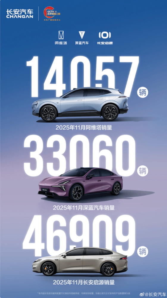 從品牌分布來看,長安啟源、深藍汽車和阿維塔等新能源品牌均貢獻了可觀的銷量。長安啟源以46909輛的銷量領(lǐng)跑,深藍汽車和阿維塔則分別以33060輛和14057輛的銷量緊隨其后。這些品牌的協(xié)同發(fā)展,共同推動了長安新能源整體銷量的攀升。