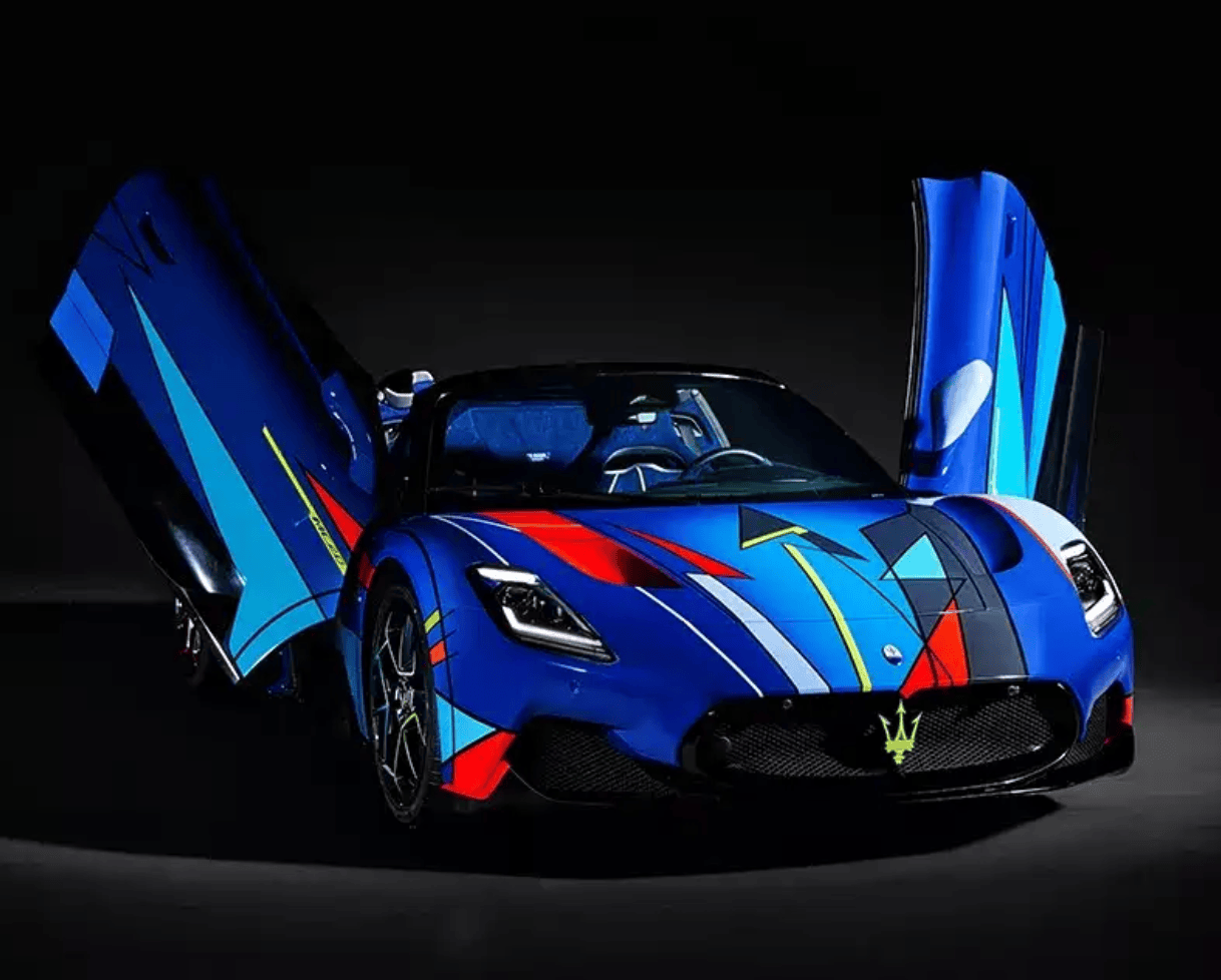 車身涂裝是MC20“Opera d’Arte”敞篷特別版最引人注目的亮點。設計師從抽象藝術中汲取靈感,通過全手工涂裝工藝,將十五種色彩巧妙排列組合,經過數千小時的精細繪制,打造出獨一無二的視覺效果。從定制酸橙黃到躍動電光綠,每一抹色調都經過專門調制,力求在細節中喚醒情感共鳴。這種藝術化的表達不僅體現在車身表面,更延伸至輪轂等細節部位,彩色圖形點綴其中,進一步強化了整車的個性化屬性。