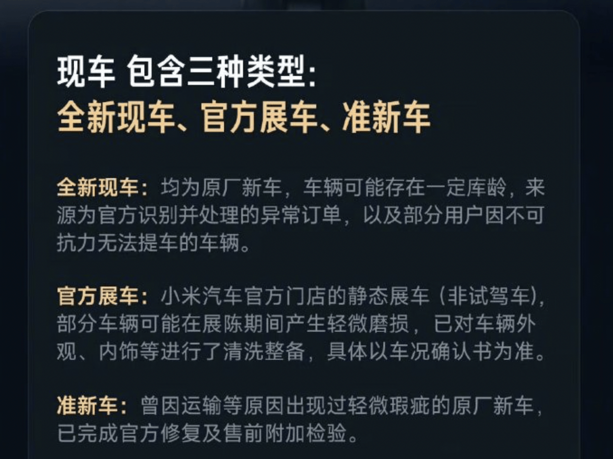 小米汽車推出“現車選購”:庫存展車瑕疵車齊上陣,部分車型優惠超五萬