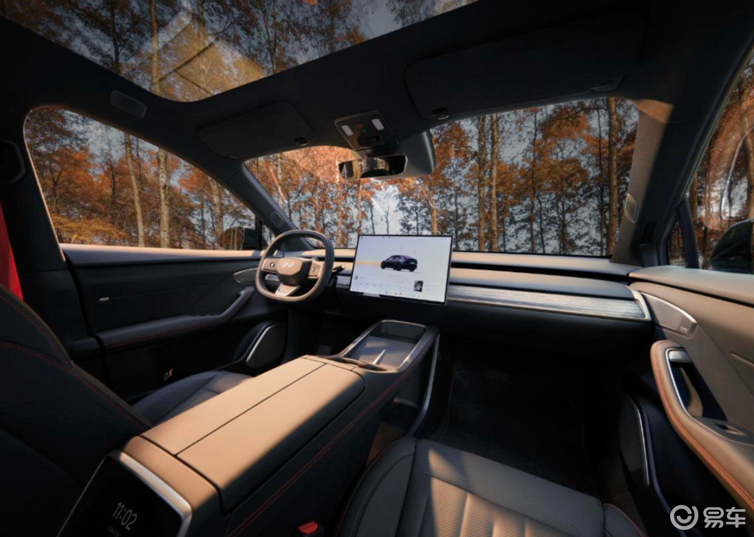 作為樂道L60的衍生版本,黑騎士特別版在保持原有車身尺寸(長4828mm、寬1930mm、高1616mm,軸距2950mm)和中型SUV定位的基礎(chǔ)上,通過全黑化設(shè)計語言打造出更具運動感的視覺效果。新車采用黑色車漆搭配熏黑輪轂與前后車標(biāo),形成統(tǒng)一的深色系外觀。內(nèi)飾同樣延續(xù)全黑主題,僅在安全帶和縫線處點綴橙紅色元素,營造出既沉穩(wěn)又不失活力的座艙氛圍。