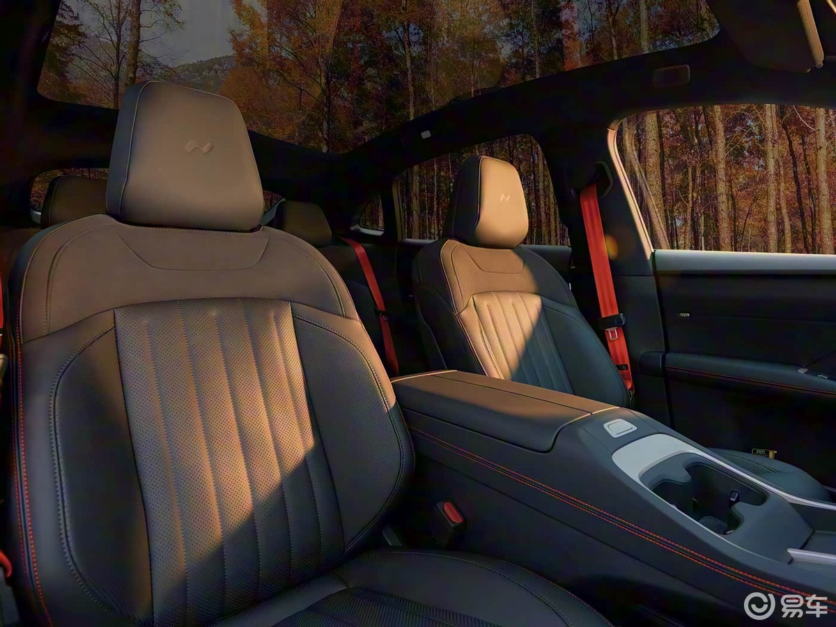 內(nèi)飾方面,樂道L60黑騎士版同樣延續(xù)了黑化主題,車內(nèi)以大面積純黑配色為主,營造出一種沉穩(wěn)而神秘的氛圍。細(xì)節(jié)處則以雙層紅色縫線進(jìn)行點綴,不僅提升了內(nèi)飾的精致感,也凸顯了車輛的運(yùn)動氣息。紅色安全帶的加入更是為整車內(nèi)飾增添了一抹亮色,讓人眼前一亮。