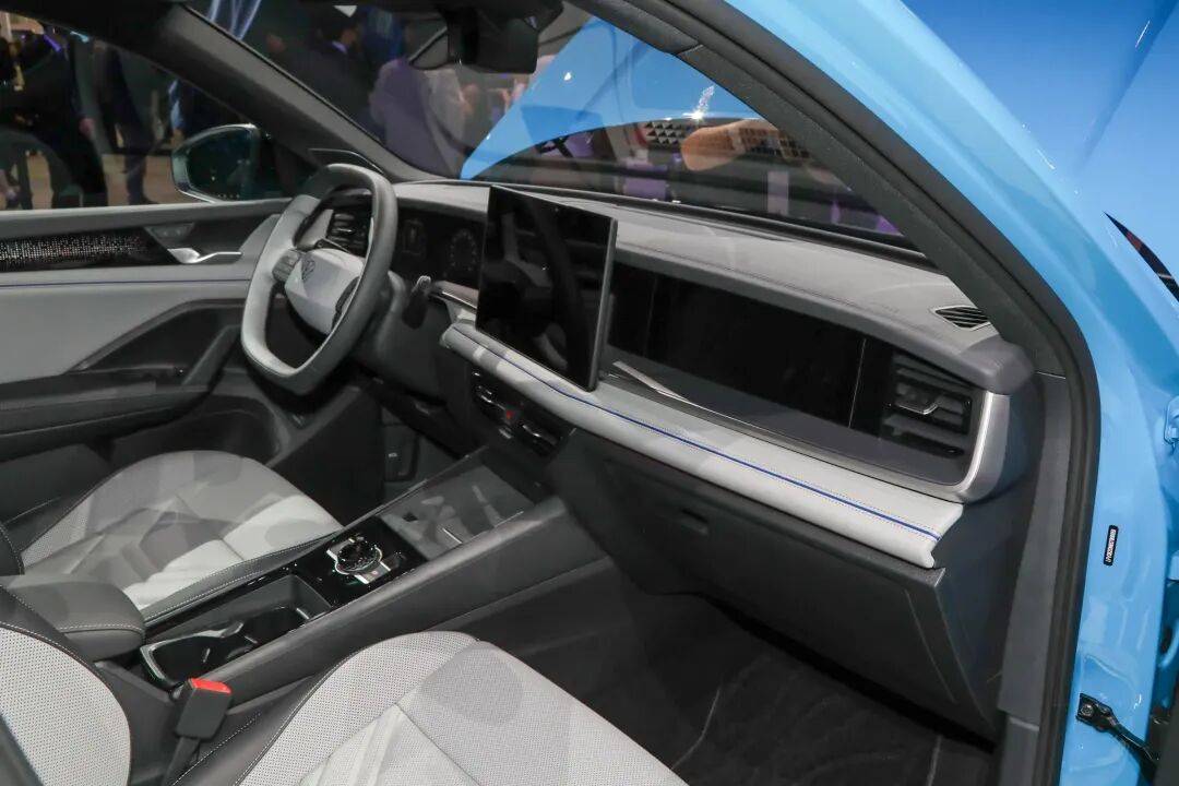 內飾方面,全新探岳L PHEV與燃油版保持高度一致,但取消了中控屏下方的觸控區域,換裝了全新樣式的雙輻平底方向盤,并繼續采用旋轉式電子懷擋換擋機構。科技配置方面,新車配備10.25英寸液晶儀表、15英寸中控屏和11.6英寸副駕娛樂屏,內置高通驍龍8155車機芯片,支持CarPlay和CarLife手機互聯功能。舒適性配置上,前排座椅加熱/通風、哈曼卡頓Harman/Kardon揚聲器以及科大訊飛語音解決方案等均有搭載,提升了駕乘體驗。