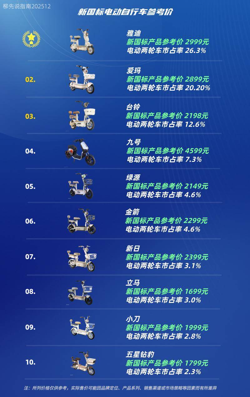 頭部企業(yè)憑借規(guī)模效應(yīng)與研發(fā)積累,在市場轉(zhuǎn)型期占據(jù)先發(fā)優(yōu)勢。2025年上半年數(shù)據(jù)顯示,雅迪、愛瑪、臺鈴三大品牌分別以26.3%、20.2%、12.6%的市場占有率穩(wěn)居前三。其新國標(biāo)產(chǎn)品線呈現(xiàn)明顯分層:入門級車型定價集中在2198-2999元區(qū)間,中高端產(chǎn)品則突破3000元門檻。九號公司作為中高端市場的重要參與者,通過強化智能交互系統(tǒng)、提升設(shè)備連接性能等差異化策略,將主力產(chǎn)品定價維持在3000元以上價位段。