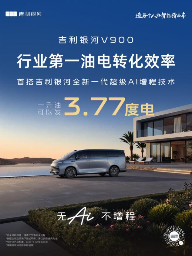 吉利銀河近日通過線上直播,正式揭曉了旗下首款旗艦MPV——銀河V900的超級AI增程技術細節。這款定位為“AI全場景家庭旗艦MPV”的新車,憑借在續航、空間、能耗與智能四大領域的突破性創新,重新定義了新能源MPV的價值標準,為用戶帶來前所未有的出行體驗。