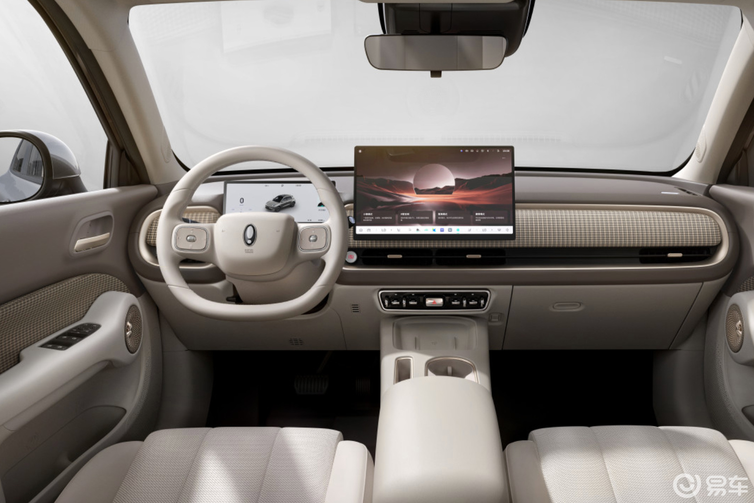 進入車內,歐拉5的內飾設計同樣令人眼前一亮。簡約化的設計風格貫穿始終,中控臺和車門內飾區域采用織物網格材質包裹,營造出一種環保且溫馨的氛圍。大尺寸懸浮中控屏、鏤空設計的中央通道區域、懷擋式換擋機構以及手機無線充電等配置,不僅提升了車內的科技感,也讓駕駛者和乘客的操作更加便捷。