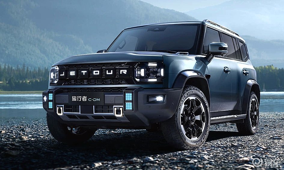 捷途旅行者C-DM定位緊湊型SUV,車身尺寸為4795/2006/1875毫米,軸距為2800毫米。其同樣采用硬派方盒子造型,前臉采用JETOUR立體格柵設計,線條硬朗,搭配兩側LED前燈組;車尾配備直瀑貫穿式尾燈和外掛式備胎的“小書包”設計,尾門采用側開式,整體造型方正且具有辨識度。內飾設計延續硬派風格,大面積采用麂皮材質包裹,座椅采用菱形格雙排縫線工藝提升質感。中控臺配備10.25英寸全液晶儀表盤與15.6英寸中控屏,同時保留部分實體按鍵,便于行駛中操作。車內設有多處軟包覆拉手,分布在車門、中控臺等位置,方便乘客在顛簸路段保持穩定;全景天窗為車內帶來充足采光,前排配備多層隔音玻璃。智能座艙方面,捷途旅行者C-DM搭載的車機系統功能齊全,但具體芯片和互聯功能未明確提及,車內配備多色氛圍燈,空調系統調節便捷,出風均勻,儲物空間設計合理,門板儲物槽、中控臺下方儲物格等位置便于放置隨身物品。