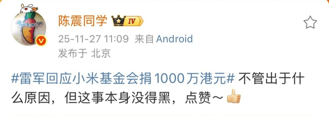 今年12月4日,陳震在視頻中提及"7000法務"這一已被辟謠的小米標簽,引發新一輪輿論風波。當晚其賬號即遭全平臺封禁,這場持續數年的流量游戲最終以法律制裁收場。其與車評人袁啟聰的公開對罵、借小米香港捐款事件發表爭議言論等行為,均被視為挑戰公眾底線的典型案例。