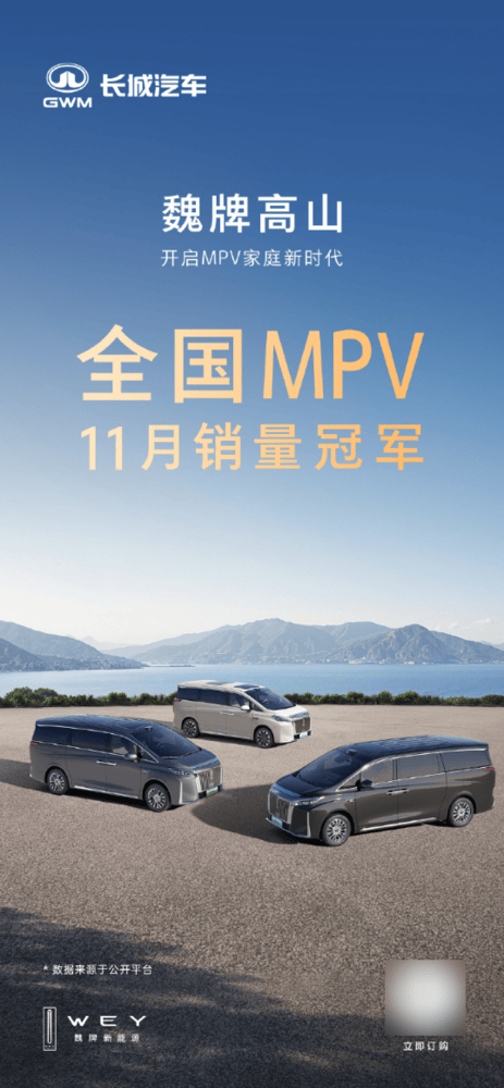 近日,國內MPV市場迎來一則重磅消息:魏牌高山憑借出色表現,連續兩個月登頂全國MPV銷量榜首。數據顯示,該車型11月銷量達10416輛,成為當月唯一銷量突破萬輛的MPV產品,而此前10月其已以9928輛的成績首次問鼎冠軍寶座,市場熱度持續攀升。