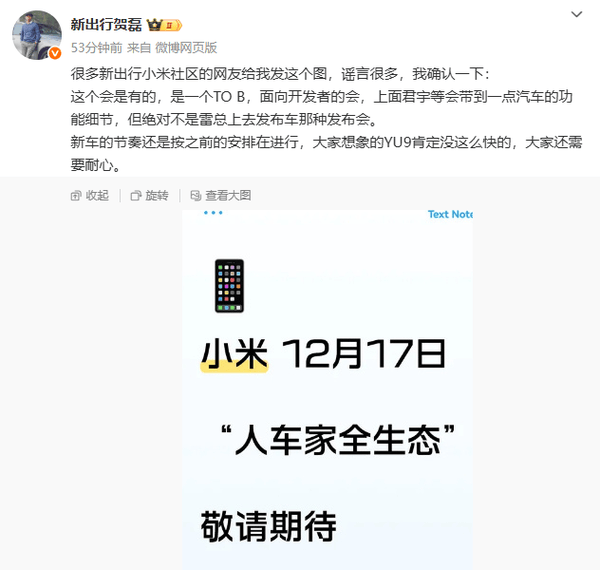 近日,有數(shù)碼領(lǐng)域消息人士透露,小米公司計劃在本月舉辦一場以“人車家全生態(tài)”為主題的專項活動。據(jù)悉,此次活動主要面向開發(fā)者群體及行業(yè)合作伙伴,屬于典型的TO B類型,并非面向普通消費者的新車發(fā)布會,因此小米創(chuàng)始人雷軍不會親自登臺主持。