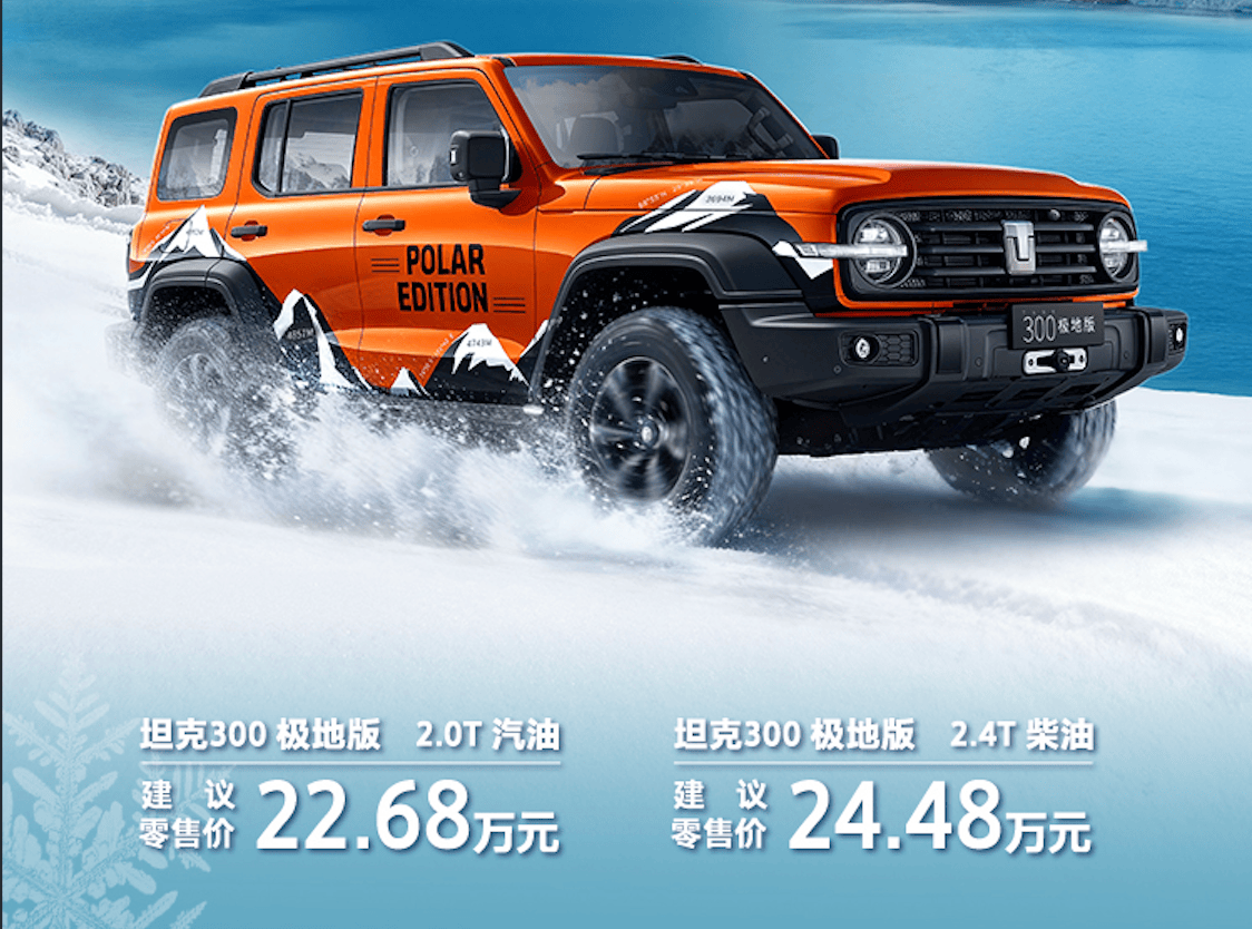 坦克300極地版上市,專屬配色+三套選裝包,硬派越野新選擇
