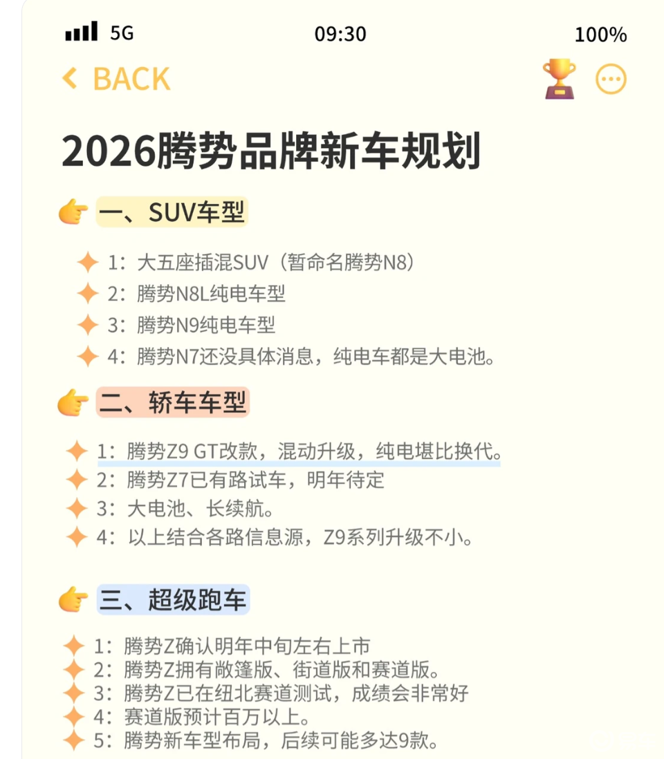 對于有購車計劃的消費者而言,2026年將是關注騰勢的絕佳時機。隨著新車矩陣的完善,市場競爭將推動配置升級與價格優化。尤其是騰勢Z9 GT的改款細節與騰勢Z超跑的紐北測試成績,值得持續關注。無論是家用SUV、中型轎車還是百萬超跑,騰勢的新車都可能帶來意想不到的驚喜。