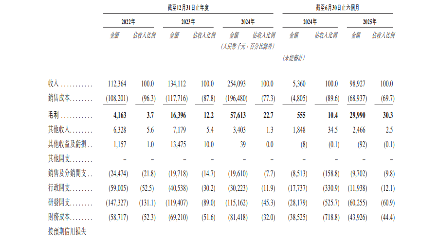 盈利能力方面,主線科技也在逐步提升。2022年至2024年,公司毛利分別為420萬(wàn)元、1640萬(wàn)元和5760萬(wàn)元,毛利率分別為3.7%、12.2%、22.7%,復(fù)合年增長(zhǎng)率達(dá)272.0%。2025年上半年,毛利更是達(dá)到3000萬(wàn)元,遠(yuǎn)超2024年同期的60萬(wàn)元,毛利率提升至30.3%。公司解釋稱,這主要得益于自動(dòng)駕駛產(chǎn)品及解決方案的商業(yè)化落地以及交付能力的提升。