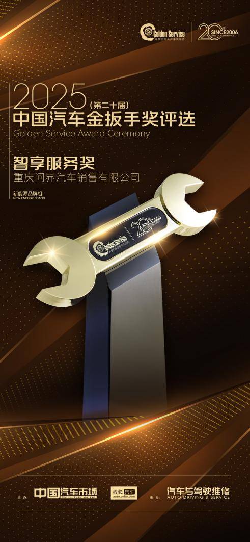 在2025(第二十屆)中國汽車金扳手獎評選中,問界汽車憑借其創新的“智享服務體系”和扎實的用戶服務實踐,一舉斬獲新能源品牌組“智享服務獎”。這一榮譽不僅體現了專業機構對其服務能力的高度認可,也反映出市場對問界用戶服務模式的廣泛肯定。與此同時,問界全國12家用戶中心榮獲“金扳手獎百強質選店”稱號,多位主播還摘得“十大主播”獎項,全面展現了其在服務生態建設上的卓越成果。