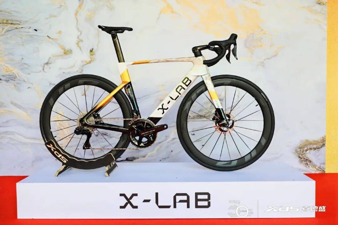 除了X-LAB游龍,喜德盛還推出了30周年紀(jì)念版X-LAB AD9公路車。這款車型以純凈白色為主色調(diào),恰到好處地點(diǎn)綴鎏金細(xì)節(jié),簡(jiǎn)約中透露出貴氣,將30周年的品牌沉淀與紀(jì)念感展現(xiàn)得淋漓盡致。車架設(shè)計(jì)搭載了喜德盛高端品牌X-LAB的技術(shù)靈魂,依托強(qiáng)大的碳纖維車架生產(chǎn)實(shí)力,這款A(yù)D9車架在輕量化與剛性之間取得了完美平衡。其前部頭管設(shè)計(jì)極具標(biāo)志性,能夠減輕迎風(fēng)面積,提升氣動(dòng)性能。M碼裸架重僅850克,且經(jīng)過(guò)英國(guó)SSEH風(fēng)洞驗(yàn)證,擁有絕佳的氣動(dòng)效果。