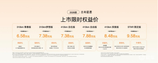 在當下的汽車消費市場,消費者對于選車的標準愈發嚴苛,既期望價格合理,又對配置有著較高要求。然而,能同時滿足這兩點的車型并不多見。吉利星愿的出現,憑借6.58萬 - 9.58萬的限時權益價以及“全系起步即高配”的誠意,迅速吸引了眾多消費者的目光,成為市場中的熱門之選。