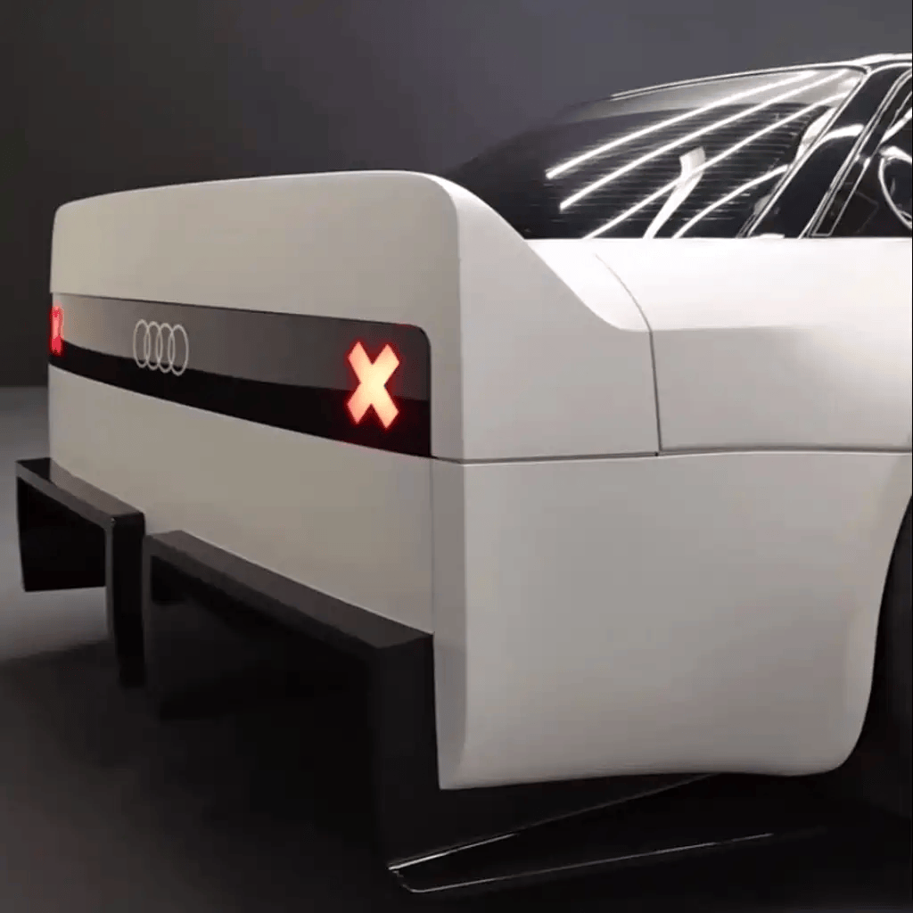 從外觀來看,奧迪GT50概念車采用了極具棱角的車身線條,整體造型硬朗而富有力量感。車燈與前格柵的設計讓人聯想到奧迪的經典車型,但經過簡化處理后,又融入了現代時尚元素。夸張的前后包圍以及輪圈造型,進一步凸顯了其賽車的身份,仿佛在訴說著速度與激情的故事。