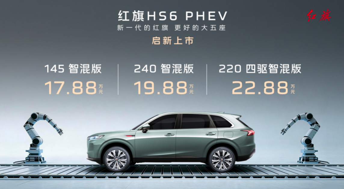 紅旗HS6 PHEV上市,大五座空間+實用配置,家庭用戶新選擇!