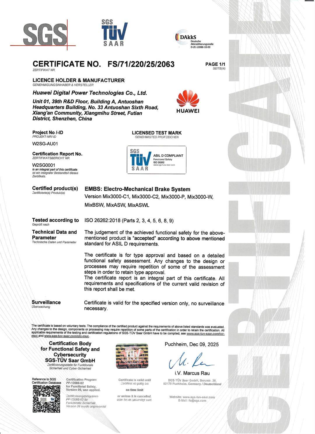 國際權威認證機構SGS通標標準技術服務有限公司近日向華為頒發了一項重要認證——融合驅動全球首個ISO 26262 DAkkS ASIL D等級認證證書。這一認證標志著華為在汽車功能安全領域達到了國際最高標準,彰顯了其在技術研發和產品安全方面的卓越實力。
