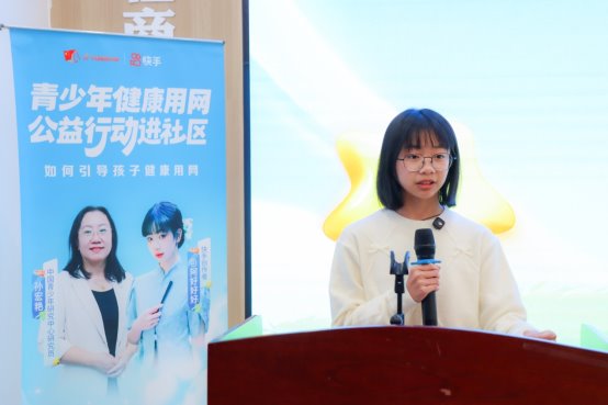 活動(dòng)當(dāng)天,快手創(chuàng)作者“阿好好好”和媽媽也從浙江寧波趕來(lái)現(xiàn)場(chǎng)。作為一名十六歲的高一學(xué)生,阿好好好通過(guò)語(yǔ)文朗誦創(chuàng)作,在平臺(tái)上吸引超百萬(wàn)人關(guān)注,她和媽媽分別從女兒和母親的視角,向現(xiàn)場(chǎng)的家長(zhǎng)分享了她們母女二人在用網(wǎng)上的相處之道。
