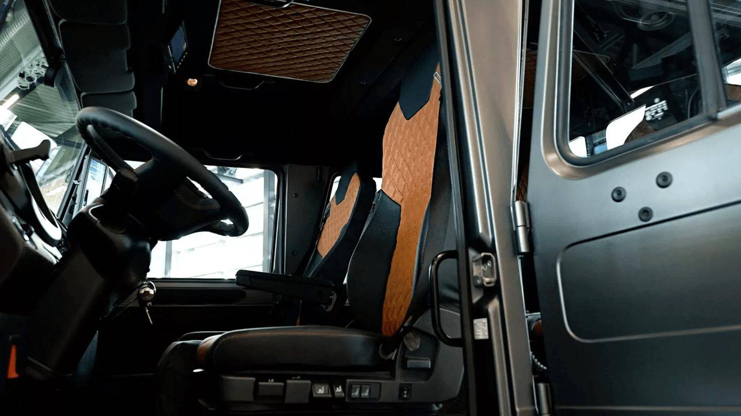 動力系統是此次升級的核心亮點。新車搭載的7.7L OM936直列六缸柴油發動機取代了原有四缸機型,最大功率從170kW提升至220kW。奔馳工程師表示,這套動力系統在增強牽引力的同時,仍保持了烏尼莫克標志性的極限通過能力,無論是陡坡攀爬還是泥濘路段都能從容應對。傳動系統保留了標志性的三把差速鎖與柔性車架,配合輪邊減速橋,確保越野性能不打折扣。