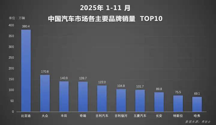 海外市場成為比亞迪銷量增長的新引擎。11月,比亞迪乘用車及皮卡海外銷量達131661輛,同比增長297%。1-11月累計海外銷量超過91萬輛,是2024年全年銷量的兩倍多。在中汽協公布的整車出口前十企業中,比亞迪的出口增速位居首位。按照當前趨勢,12月銷量數據公布后,其2025年海外銷量有望突破百萬輛大關。截至11月,比亞迪全球新能源汽車累計銷量已達1470萬輛,憑借完整的產品布局和不斷拓展的海外市場,其規模優勢與體系優勢進一步凸顯。