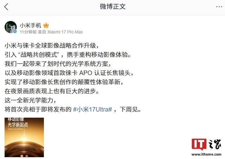 小米公司今日正式對外宣布,與徠卡的全球影像戰略合作邁入全新階段,雙方將通過“戰略共創模式”深度融合技術優勢,共同推動移動影像領域的技術革新。此次合作不僅聚焦于硬件層面的突破,更在光學系統設計、影像算法優化等核心領域展開聯合研發,旨在為用戶帶來前所未有的拍攝體驗。