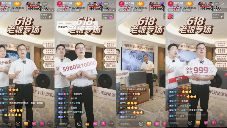 早在今年6月,熱立方就與抖音本地生活平臺共同打造了一場現象級線上直播——“老板抖出道”活動。熱立方總經理鄭雙名親自上陣,創下亮眼數據:直播在線人數突破2萬,累計曝光超180萬,第三代舒適家系統售出500多套,單場GMV突破360萬元。