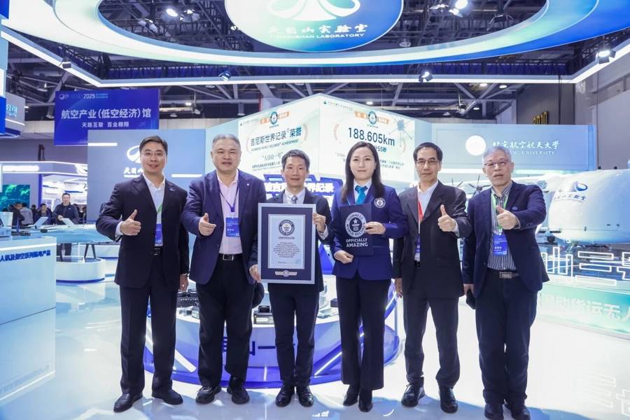 據(jù)認(rèn)證官胡曉雯(Monica Hu)介紹,該無人機(jī)于2025年11月16日在北京航空航天大學(xué)杭州國際校園上空完成挑戰(zhàn),以不間斷飛行188.605公里、用時(shí)4小時(shí)17分55秒的優(yōu)異表現(xiàn),通過官方實(shí)時(shí)監(jiān)測與嚴(yán)格數(shù)據(jù)審核,動(dòng)力系統(tǒng)全程穩(wěn)定運(yùn)行,操控性能表現(xiàn)卓越,最終以可靠技術(shù)實(shí)力和飛行表現(xiàn)贏得國際權(quán)威認(rèn)可。現(xiàn)場頒證儀式上,天目山實(shí)驗(yàn)室氫創(chuàng)團(tuán)隊(duì)接過這份沉甸甸的榮譽(yù)證書。