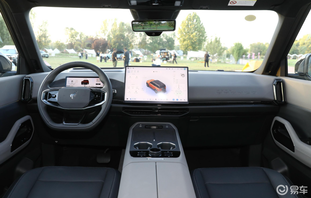 外觀造型融合硬派越野元素與現代科技感,前臉采用可發光的“BRONCO”字母標識,夜間辨識度顯著提升。車身四周配備塑料包圍護板,既降低輕微剮蹭的維修成本,也強化了越野風格。尾部背負式備胎設計不僅實用,更成為視覺焦點。