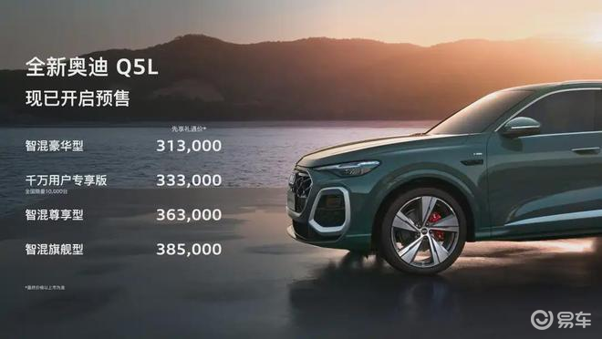 一汽奧迪近日宣布,全新奧迪Q5L正式啟動預(yù)售,起售價為31.3萬元。此次預(yù)售共推出4款車型,其中千萬用戶專享版全國限量1萬臺。新車基于全新的PPC豪華燃油車平臺打造,在外觀、內(nèi)飾、智能化配置及動力系統(tǒng)方面均進(jìn)行了全面升級,預(yù)計將為用戶帶來更優(yōu)質(zhì)的駕乘體驗。