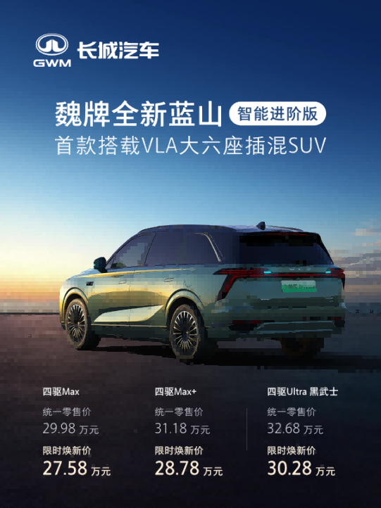在保定舉辦的魏牌全新藍山智能進階版上市發布會上,這款定位為“首款搭載VLA大六座插混SUV”的新車正式亮相,限時煥新價27.58萬元起。新車不僅融合了VLA大模型與Hi4性能版智能四驅電混技術,還在座艙體驗和安全防護等方面實現全面升級,為用戶帶來全方位的出行體驗革新。