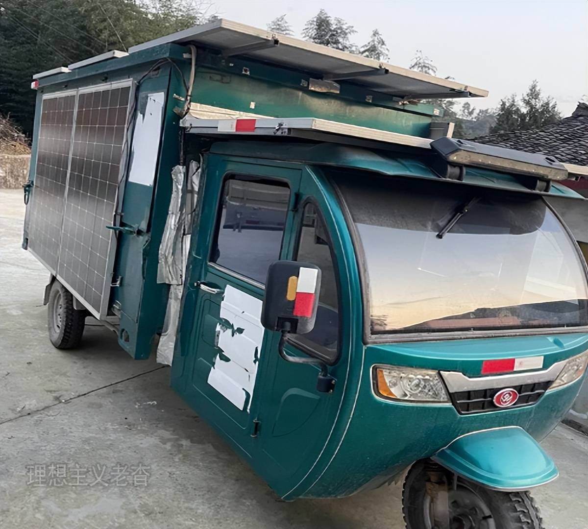 零成本自駕不是夢(mèng)!牛人自改太陽能三輪房車,滿身光伏板發(fā)電超給力
