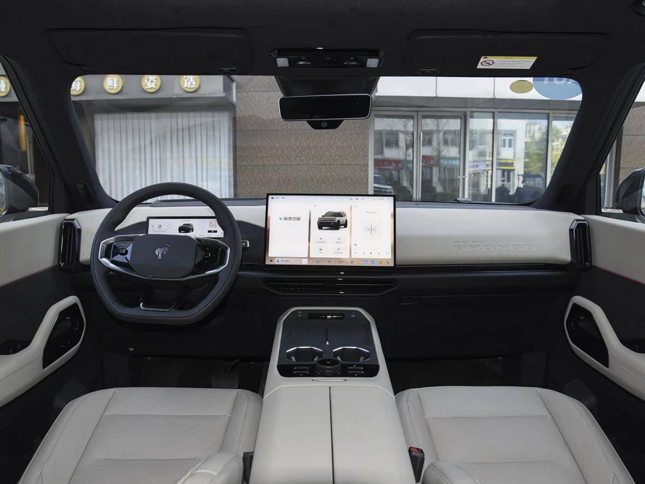 從外觀設計來看,福特智趣烈馬身上能看到一些與烈馬相似的設計元素,整體呈現出典型的“方盒子”造型。不過,烈馬的“方盒子”著重展現野性、硬派氣質,而智趣烈馬則更多地呈現出城市SUV的時尚感。新車長寬高分別為5025/1960/1825mm,軸距為2950mm。前臉格柵帶有“BRONCO”字母,與兩側類似矩形的燈組相連,側開尾門、外掛式備胎等經典設計也一應俱全。值得一提的是,其高配車型配備了激光雷達,配合雙Orin - X和31個傳感器,可實現全場景NOA等功能。