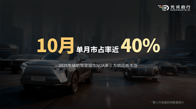 工程化能力的成熟為技術落地提供關鍵支撐。數據顯示,元戎啟行已向市場交付20萬輛搭載城市NOA(領航輔助駕駛)的量產車型,合作范圍覆蓋SUV、MPV、越野車等主流品類。2025年10月權威機構統計顯示,該企業在輔助駕駛城市NOA第三方供應商市場的單月市占率已達38.7%,形成顯著競爭優勢。